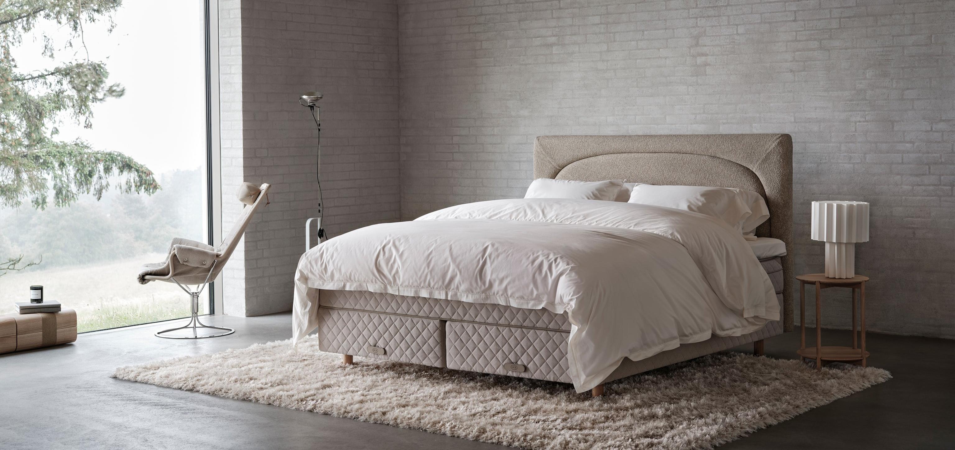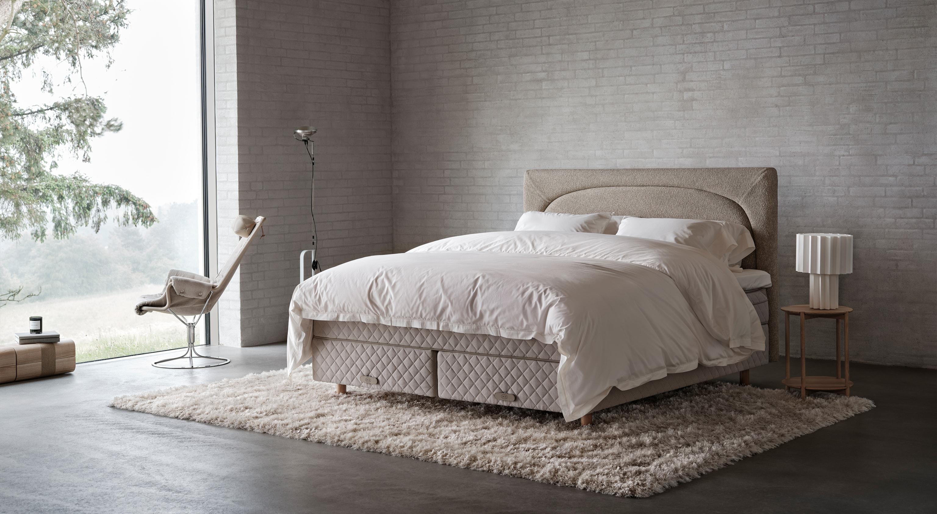 Sinta o epítome do descanso confortável. A DUX 80 oferece uma suspensão excecionalmente profunda com mais possibilidades de personalização do que qualquer outra cama DUX.