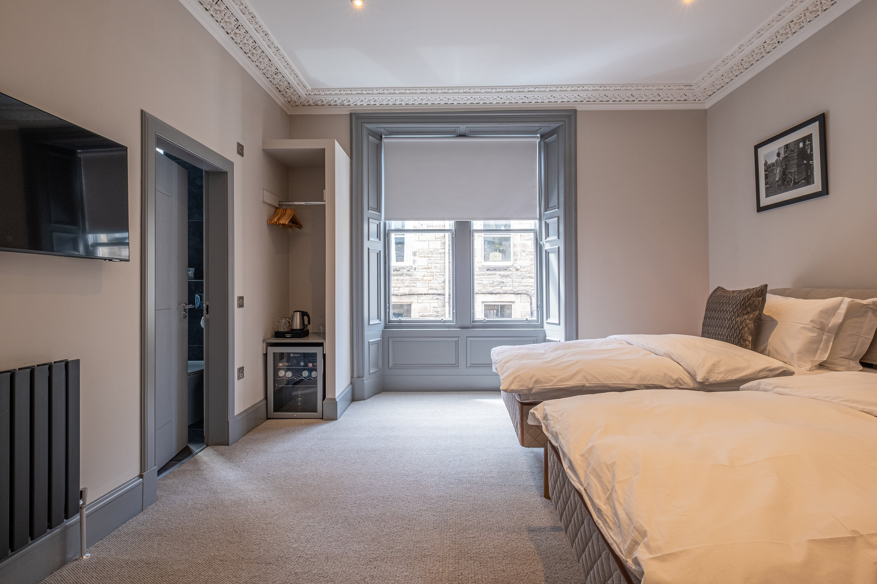 O Arran oferece alojamento contemporâneo de luxo, composto por 8 quartos. No rés-do-chão, a propriedade totalmente renovada oferece 2 suites luxuosas, 1 com acesso ao jardim (Garden Suite) e a The Murray Suite, que é uma das maiores suites em St Andrews. Existe também um quarto King/duplo com casa de banho privativa, com vista para o jardim, (Quarto 4). No primeiro andar, a The Morris Suite oferece um amplo quarto em suite de luxo King/duplo com uma área para sentar, para um relaxamento extra! Neste andar, o Quarto 5 oferece um grande quarto King/duplo com uma casa de banho privativa fabulosamente grande. O último andar oferece o quarto duplo Wee, que tem uma casa de banho privativa no corredor, juntamente com mais dois quartos King/duplos com casa de banho privativa (Quarto 7 e Quarto 8). O Arran está localizado a 275 jardas do primeiro tee do Old Course e a 5 minutos a pé de todas as lojas, bares e restaurantes de St Andrews.