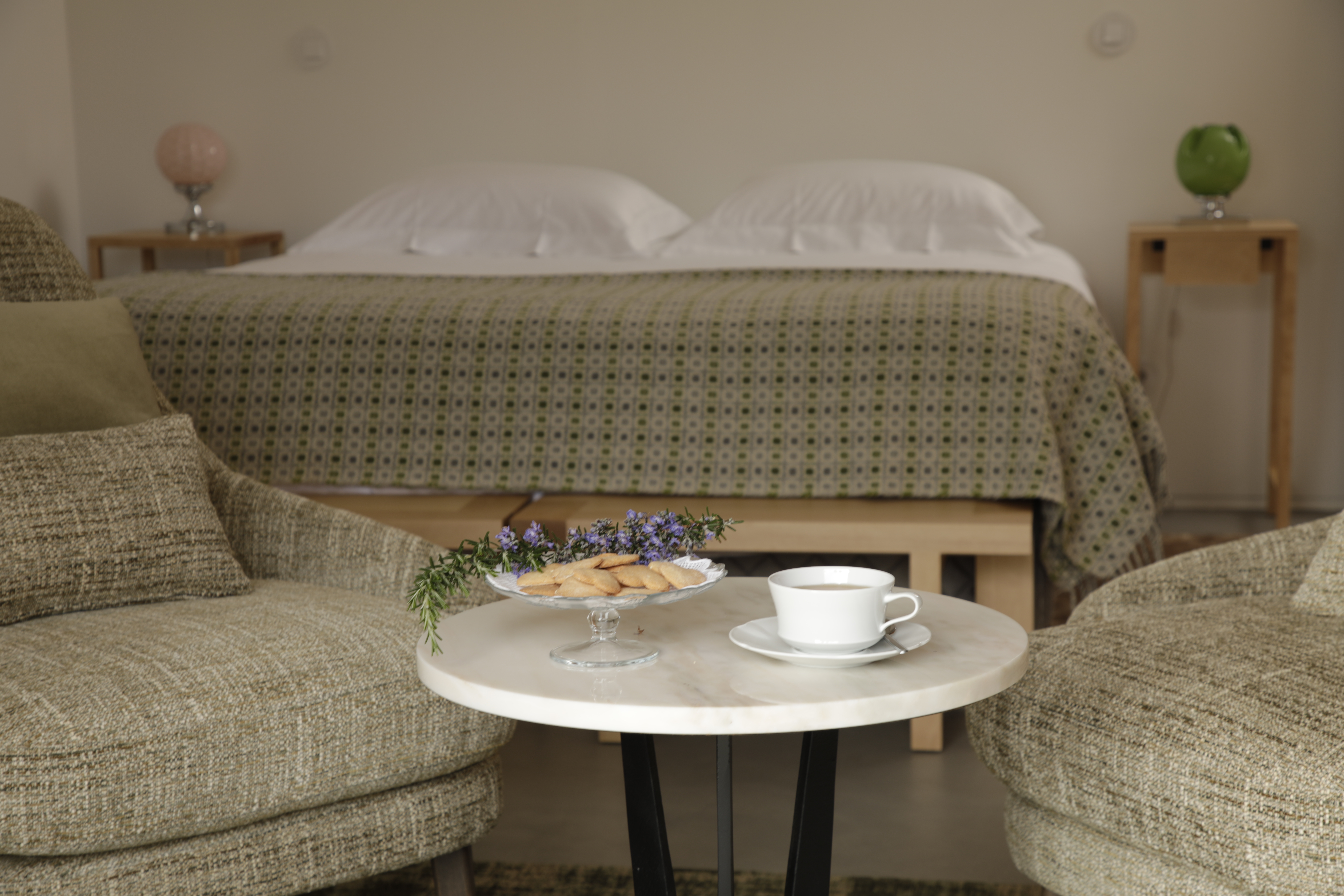 - O alojamento, uma aldeia composta por um grupo de pequenas casas espalhadas pelos terraços da colina de Brufe, proporcionando um Lugar/Tempo para relaxamento, auto-reflexão e encontro com a natureza.