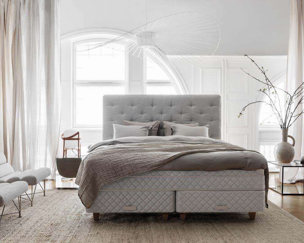 Experimente um conforto inigualável com esta icónica cama DUX de baixo perfil, com uma construção dinâmica de molas de duas camadas.