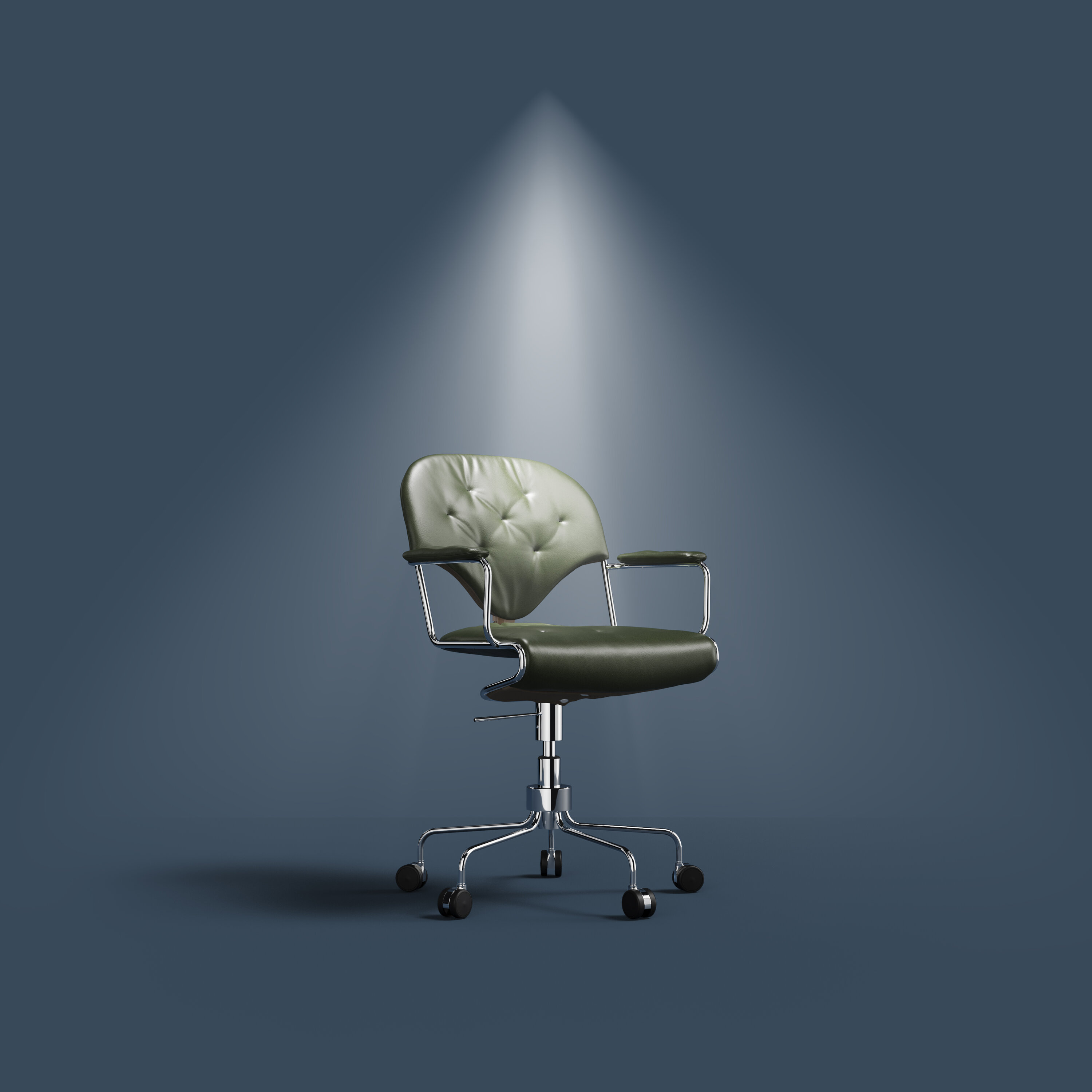 - Estrutura cromada com cinco rodas e altura ajustável