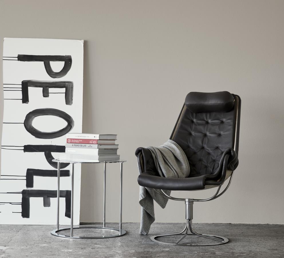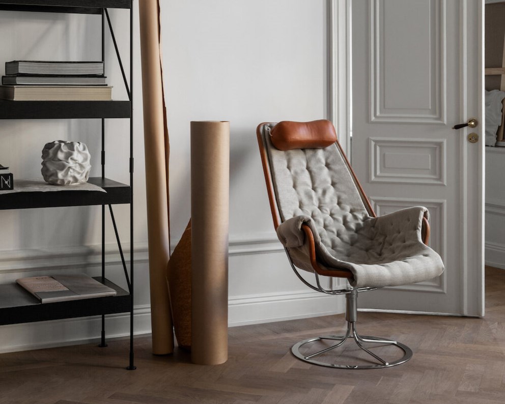 Poltrona icónica desenhada por Bruno Mathsson. A cadeira Jetson reflete tanto a sua obsessão com conforto, como uma abordagem clássica de design moderno sueco. Possui um assento em forma de taça, com um design ergonómico e costas altas com almofada para a cabeça. Base giratória cromada com um mecanismo de autorretorno exclusivo.
