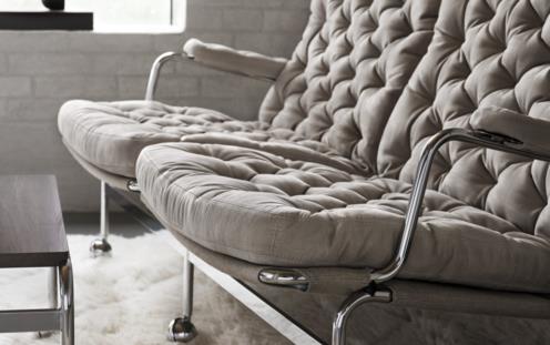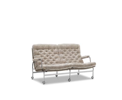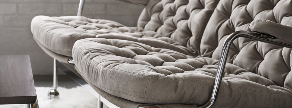 O Karin 73 é um elegante sofá de 2 lugares baseado num design clássico, com uma estrutura cromada fina e almofadas com costuras profundas.